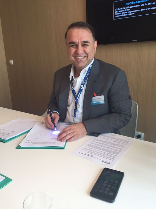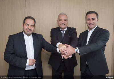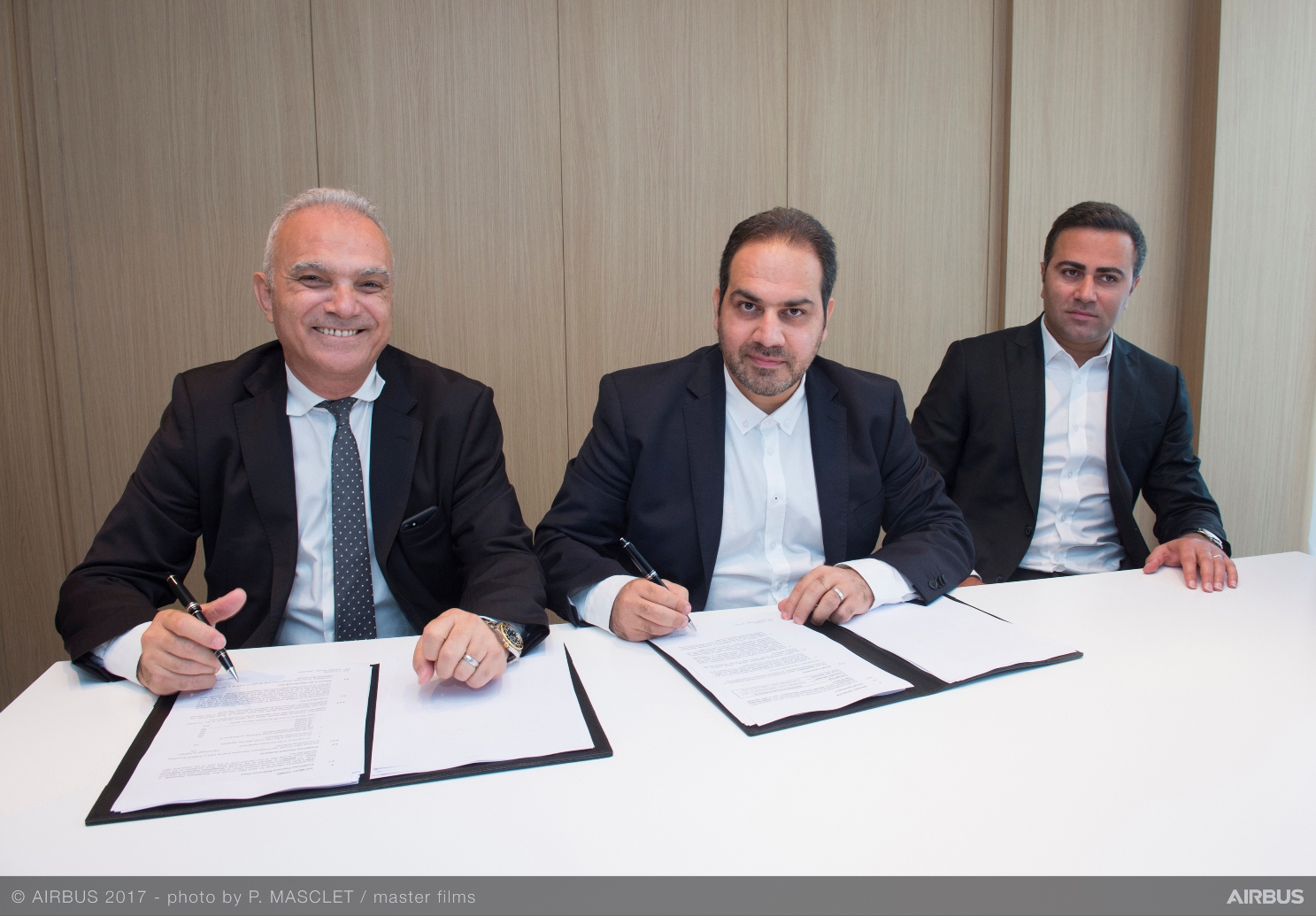 Dr. Reza Mousavi, CEO of Iran Airtour; Fouad Attar, EVP Airbus Commercial Aircraft, Middle East & North Africa; Majid Shekari, Chairman of Iran Airtour.