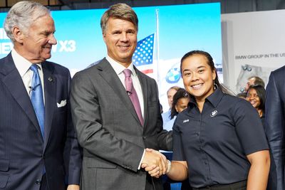 (L-R): Governor Henry Mcaster, Harald Krüger, Chairman of the Board of Management of BMW AG, and Maria Puckett, trainee at BMW Group Plant Spartanburg.