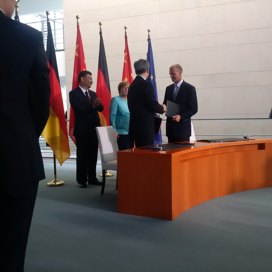 The GTA was signed in Berlin by Tom Enders, Airbus CEO, and Sun Bo, Executive Vice President of CAS, in the presence of visiting Chinese President Xi Jinping and German Chancellor Angela Merkel.
