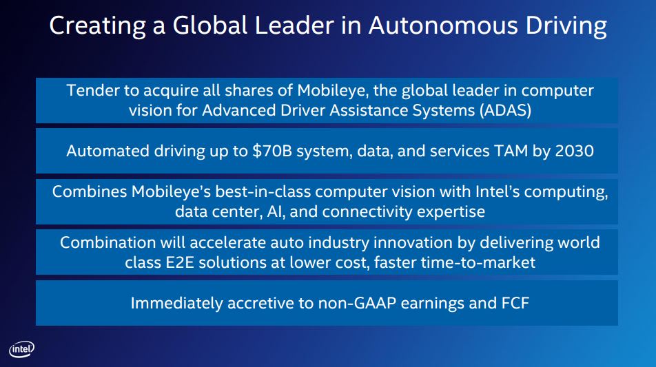Intel to Acquire Mobileye for approximately USD 15.3 Billion