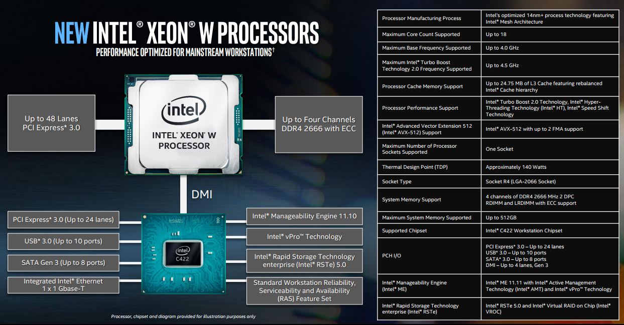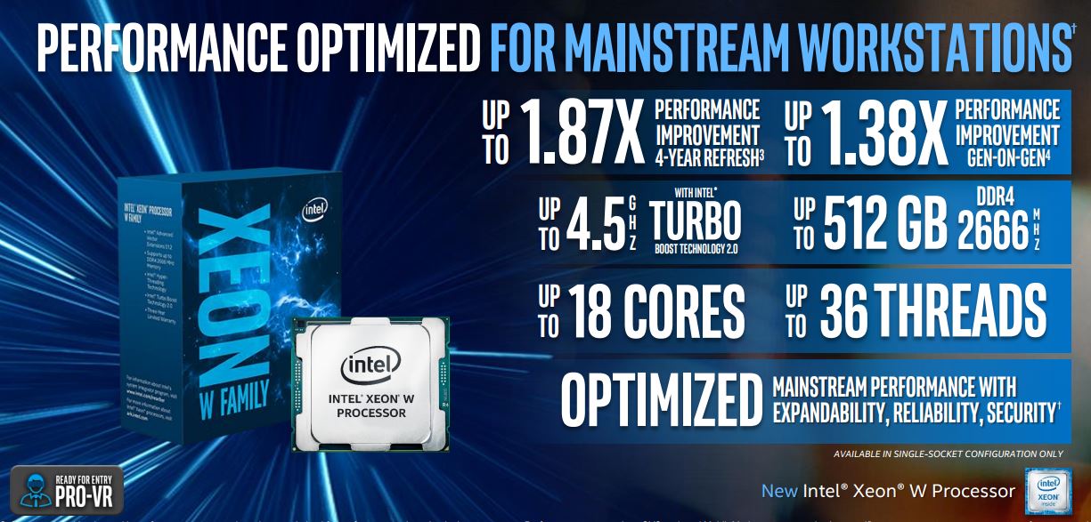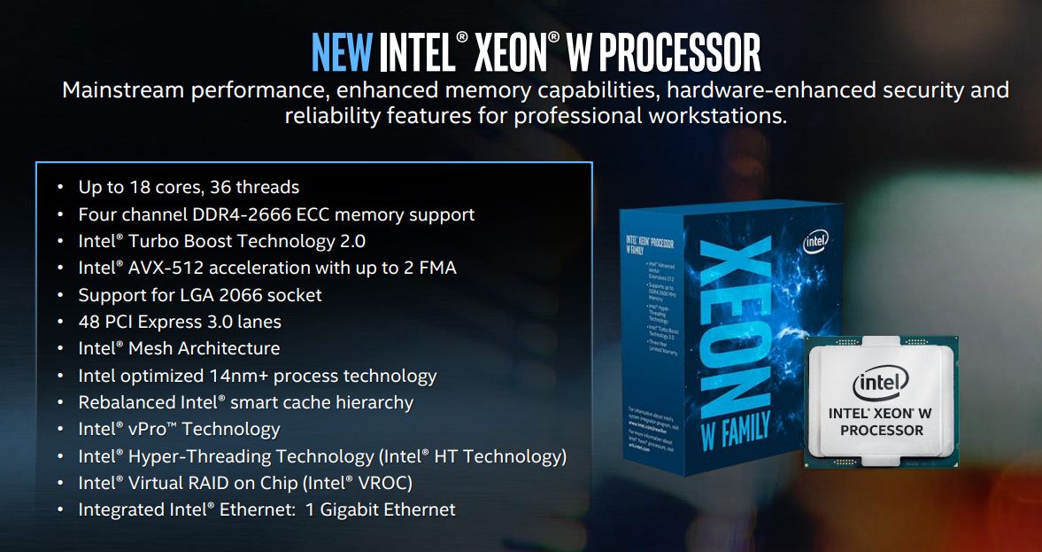 As part of today’s news, Intel also unveiled the new Intel Xeon W processors, targeting mainstream workstations.