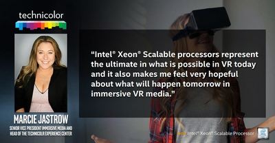 Companies like Technicolor are using Intel Xeon Scalable processors to push the boundaries of immersive media by accelerating the creation, rendering and processing of this data, and bringing the ultimate VR creation experience to life.