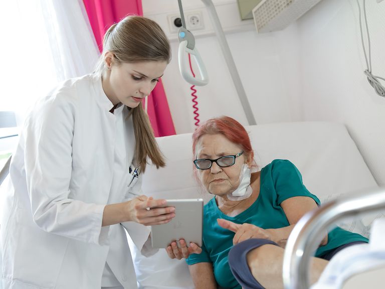 Deutsche Telekom makes it possible: A hospital doctor tells a patient her findings directly at the bed on an iPad.