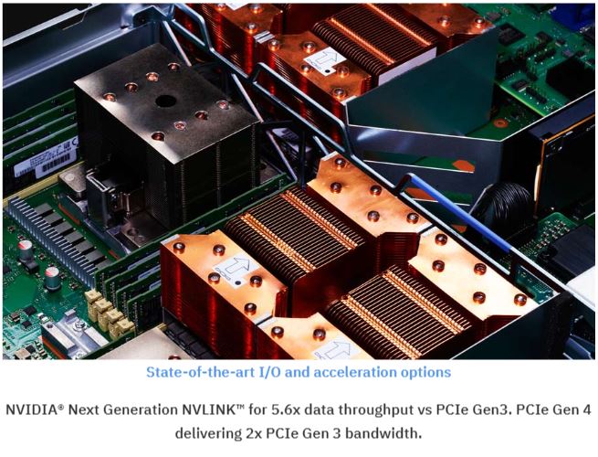 The new POWER9-based AC922 Power Systems are the first to embed PCI-Express 4.0, next-generation NVIDIA NVLink and OpenCAPI, which combined can accelerate data movement, calculated at 9.5x faster than PCI-E 3.0 based x86 systems.