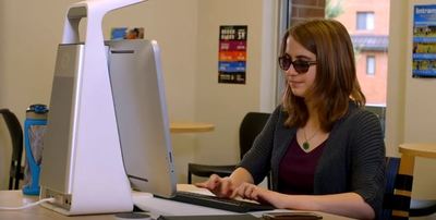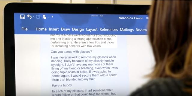 Veronica Lewis, a college student with low vision who uses accessibility capabilities in Office 365 and Windows 10 to excel academically.