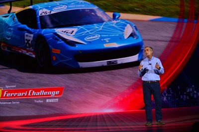 Intel CEO Brian Krzanich announces a three-year Intel partnership with Ferrari North America that will bring the power of artificial intelligence to the Ferrari Challenge North America Series.