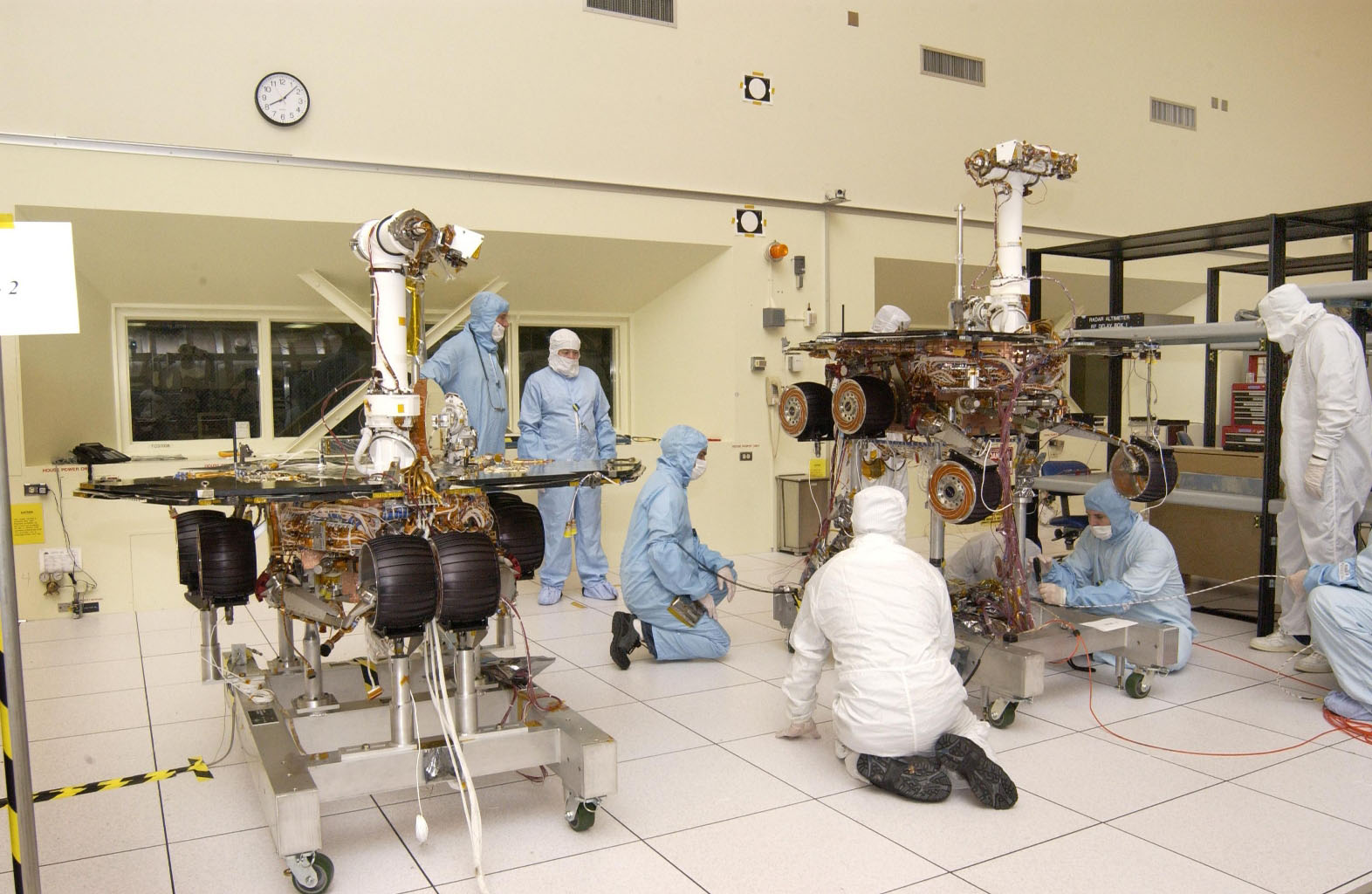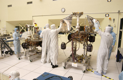 JPL engineers making adjustments to Mars Exploration Rover 1.