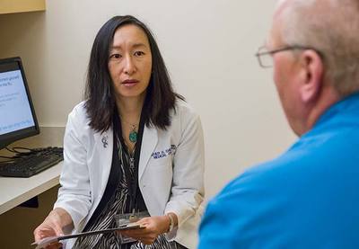 Dr. Heather Cheng counsels a patient with prostate cancer.
