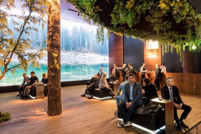 From a long way off, the 'natural' element in its decoration, accentuated by screens displaying images of untamed nature to visitors, arouses lively interest, exerting a form of sublime attraction.