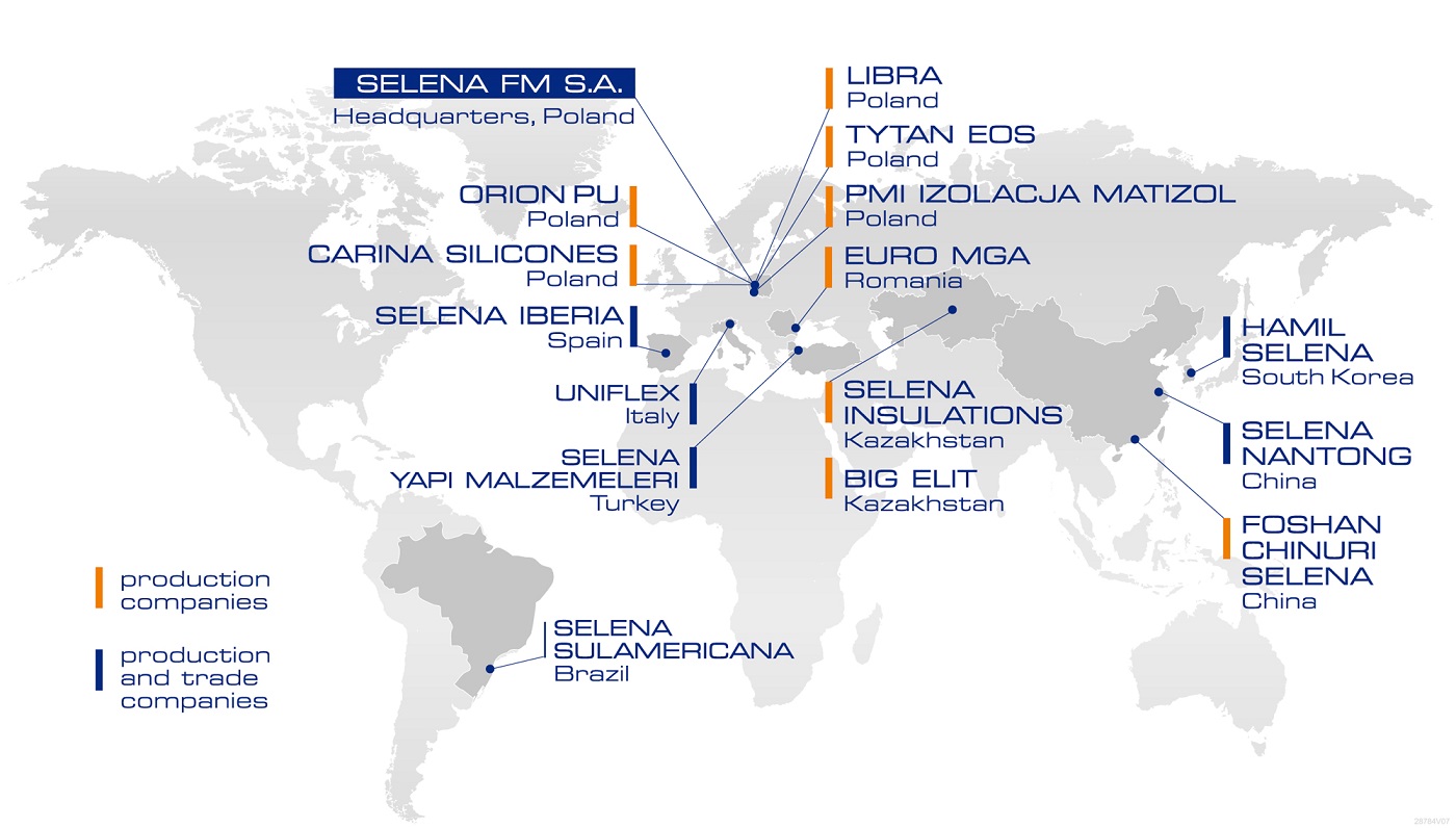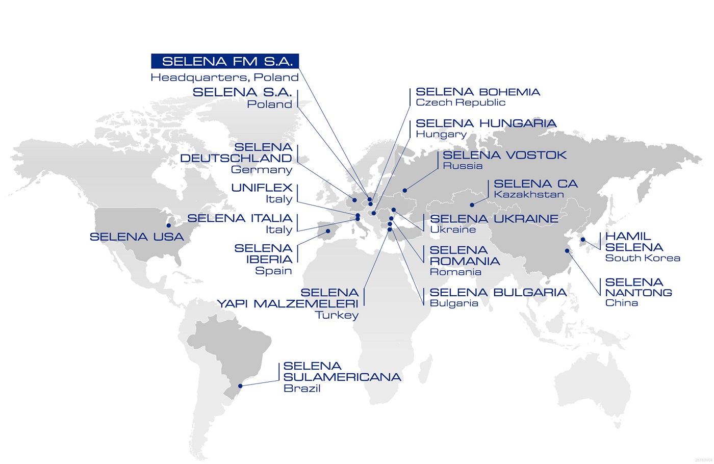 Currently, the Selena Group is a global manufacturer and distributor of construction chemicals headquartered in Poland.