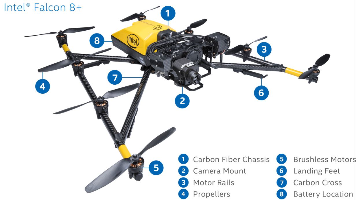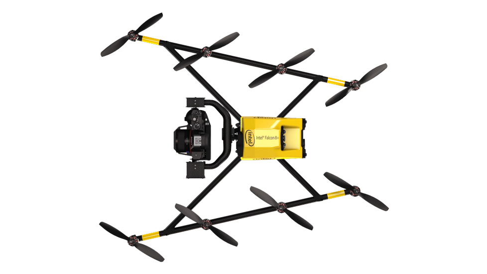 The Intel Falcon 8+ drone is a multirotor-style drone that, through pre-programmed flight plans, is able to capture hundreds of aerial images per flight.