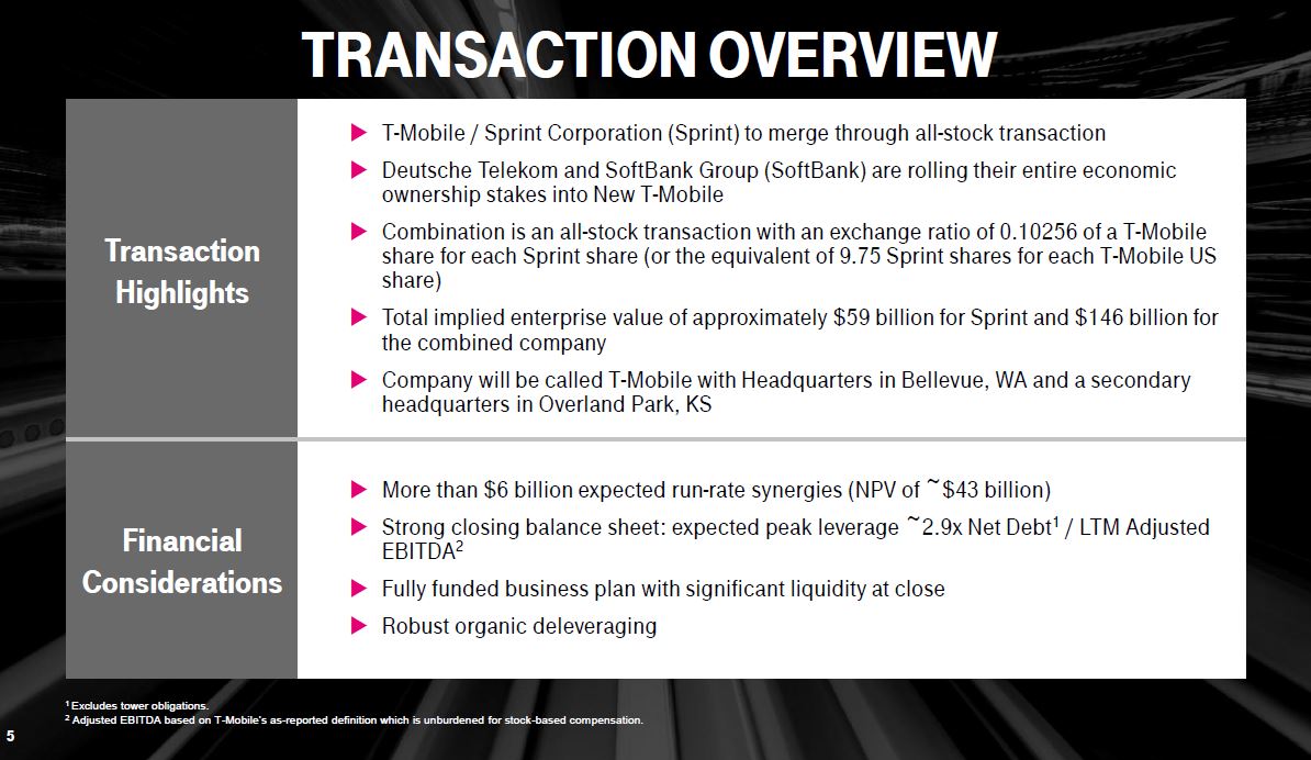 Upon consummation of the transaction, the combined company is expected to trade under the (TMUS) symbol on the NASDAQ.