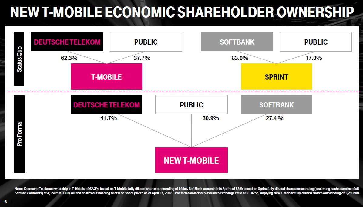 Deutsche Telekom and SoftBank Group are expected to hold approximately 42% and 27% of diluted economic ownership of the combined company, respectively, with the remaining approximately 31% held by the public.