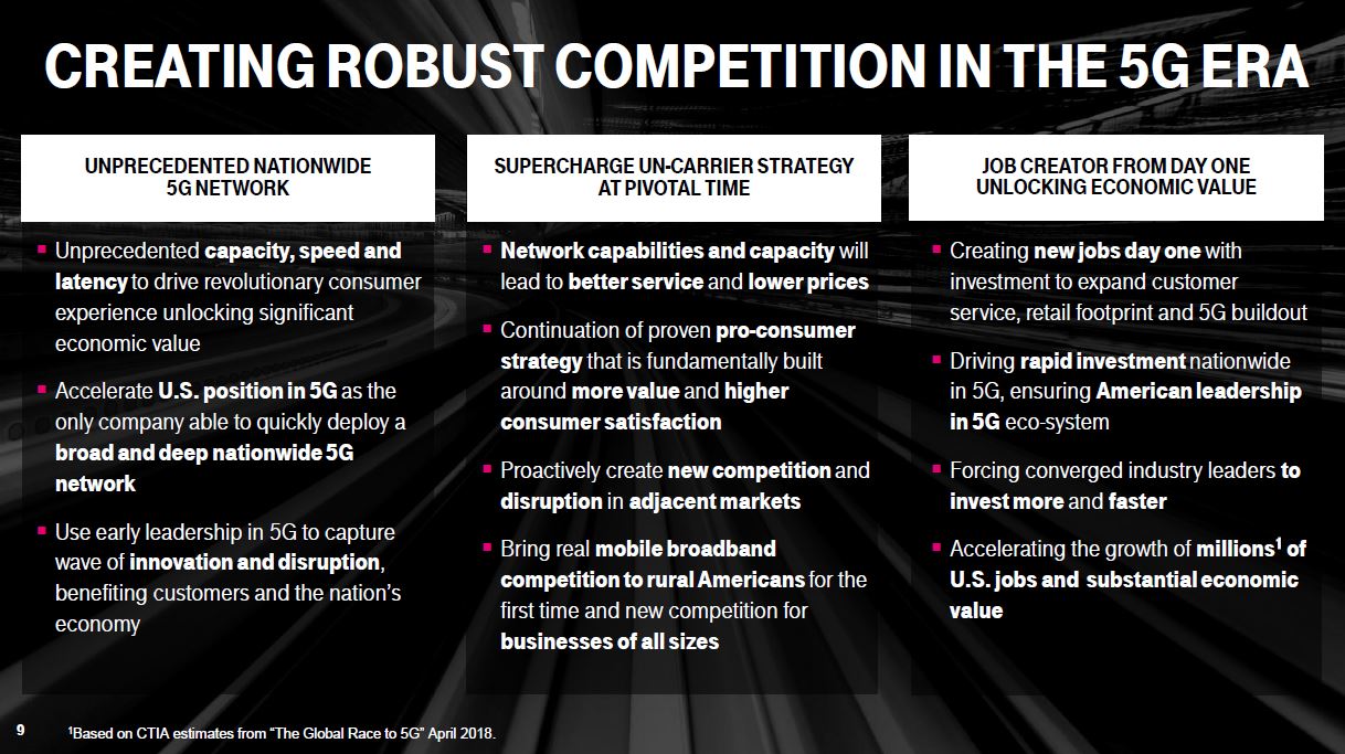 Only the combined company will have the network capacity required to quickly create a broad and deep 5G nationwide network in the critical first years of the 5G innovation cycle – the years that will determine if American firms lead or follow in the 5G digital economy.
