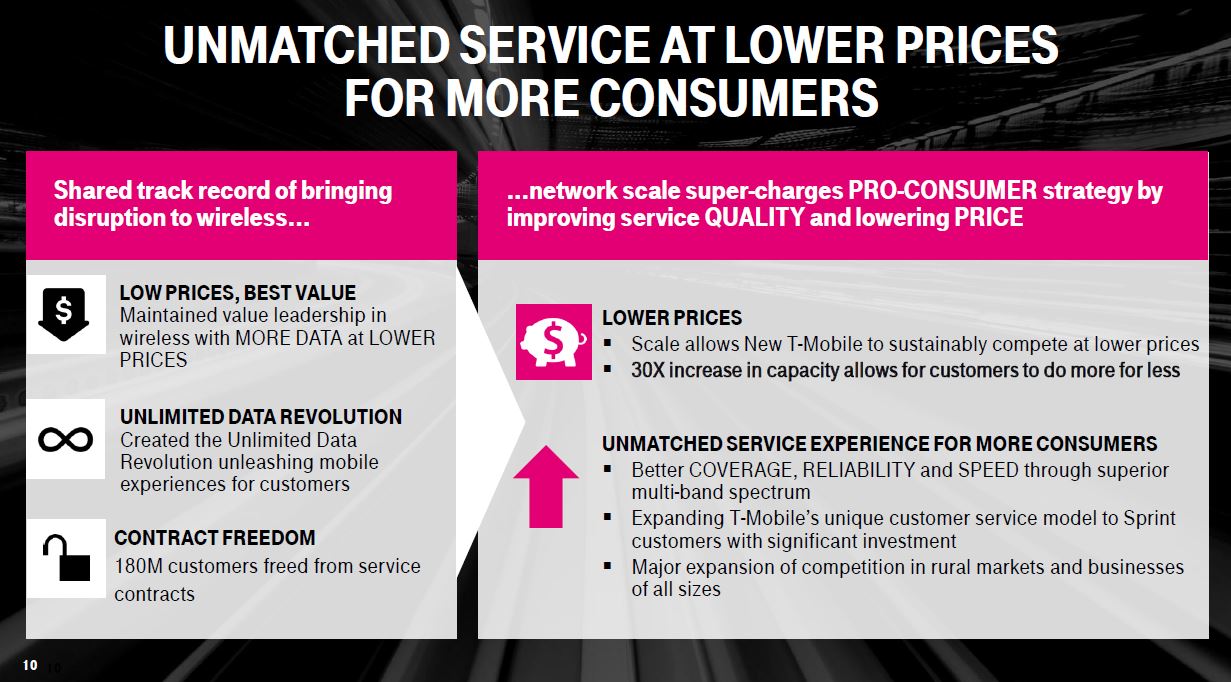 The New T-Mobile will have lower costs, greater economies of scale, and unprecedented network capacity – a winning combination that should make wireless, and adjacent industries like cable and broadband, more affordable for everyone.