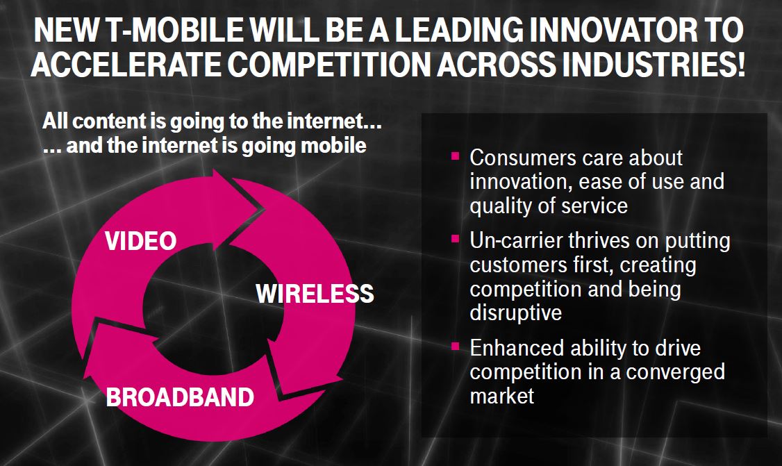 The combined company will be named T-Mobile, and it will be a force for positive change in the U.S. wireless, video, and broadband industries.