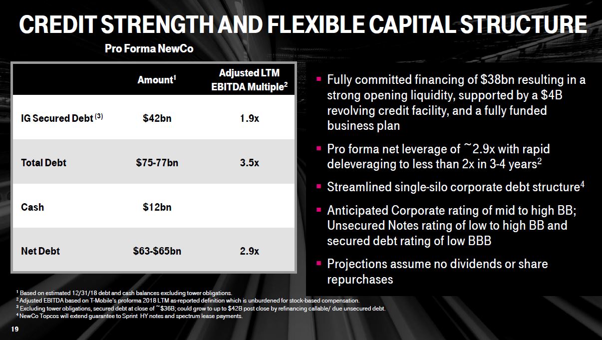 3) Proforma net debt reflects total expected debt (excluding tower obligations, premiums, discounts and issuance costs) less cash and cash equivalents.