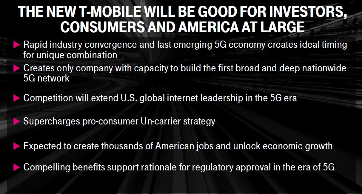 “This combination will create a fierce competitor with the network scale to deliver more for consumers and businesses in the form of lower prices, more innovation, and a second-to-none network experience – and do it all so much faster than either company could on its own,” said John Legere.