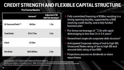 The new company will have a strong closing balance sheet and a fully funded business plan with a strong foundation of secured investment grade debt at close.