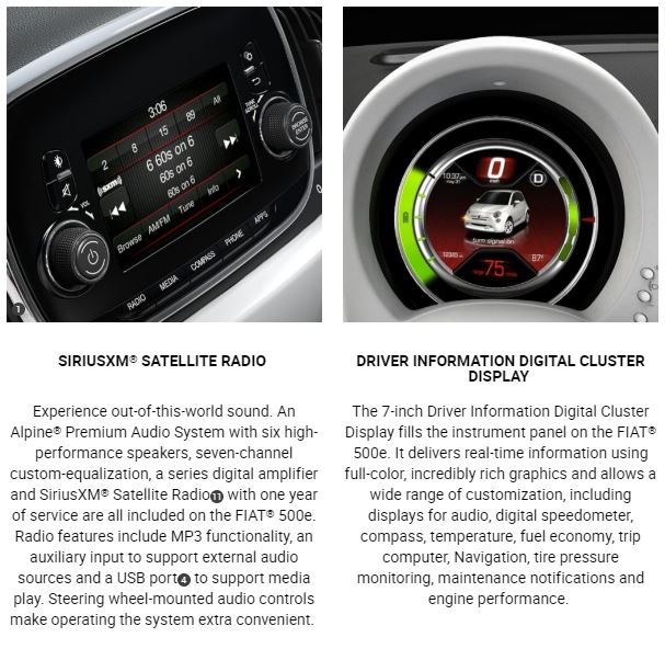 The FIAT 500e uses an 83-kW electric-drive motor that delivers 111 horsepower and 147 lb-ft of torque